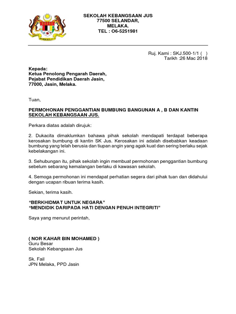 Contoh Surat Sokongan Penukaran Bumbung Pdf